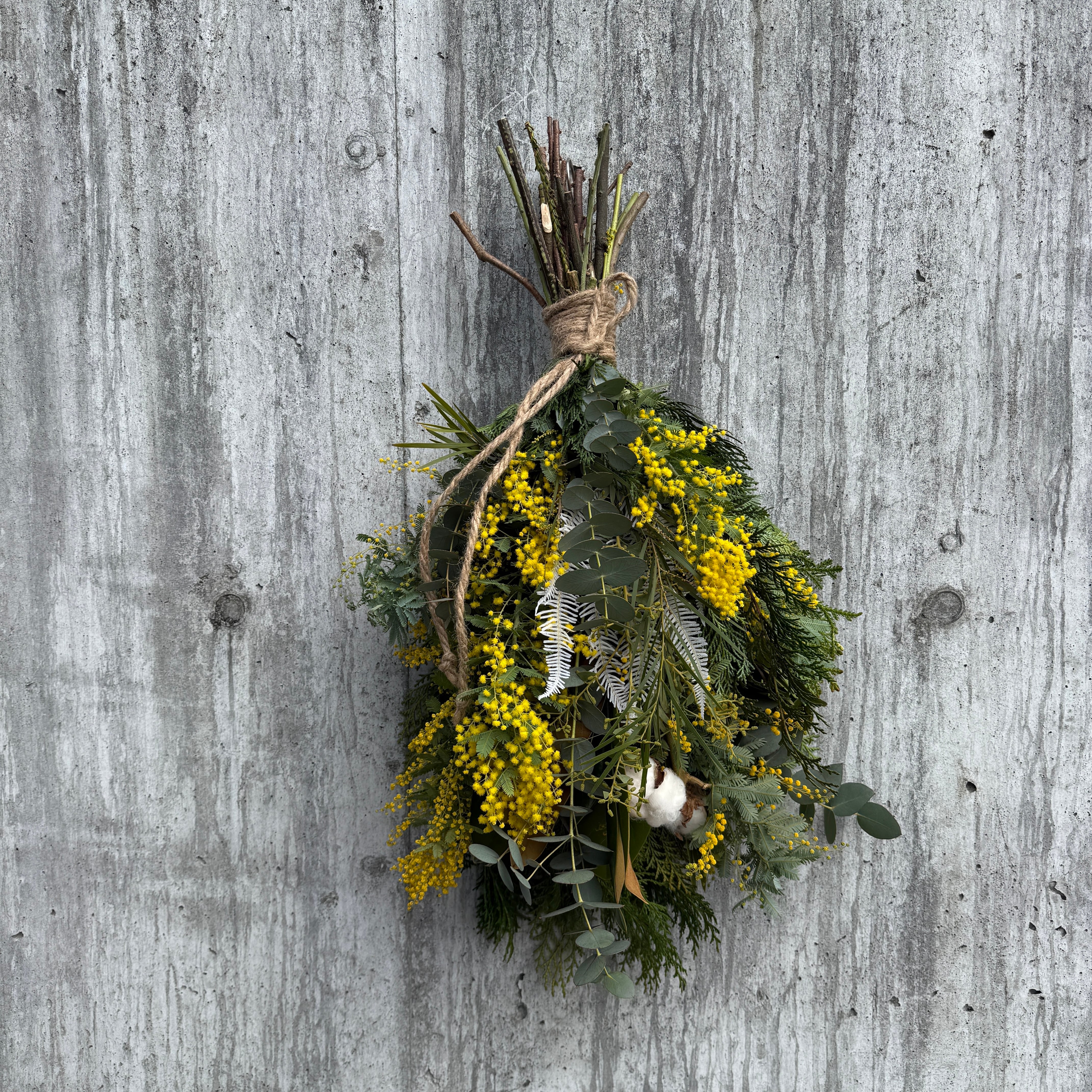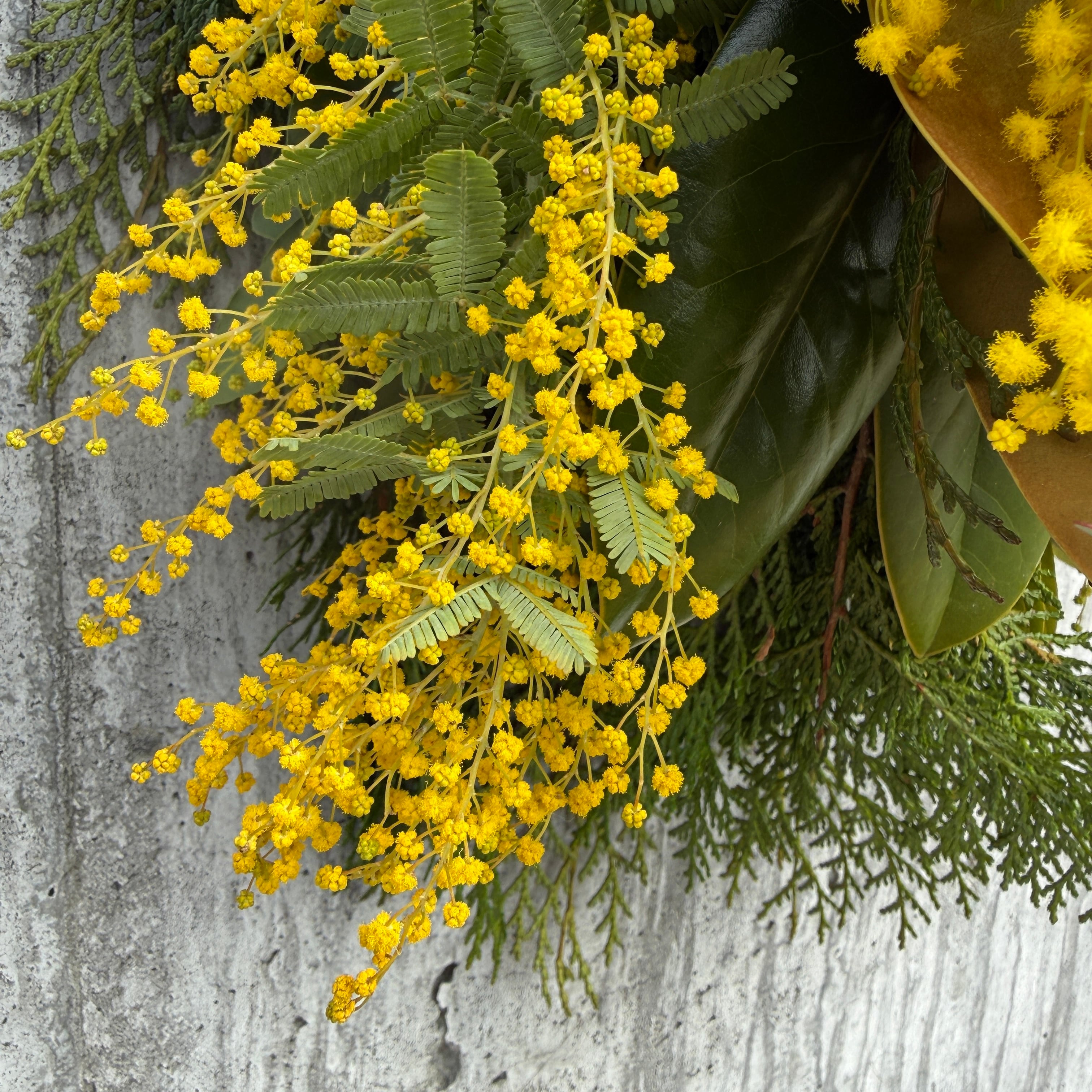 咲きたてのミモザを贅沢に使った期間限定のGreenスワッグ。