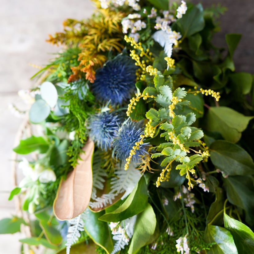 みずみずしいミモザのつぼみを使った期間限定のGreenスワッグ。